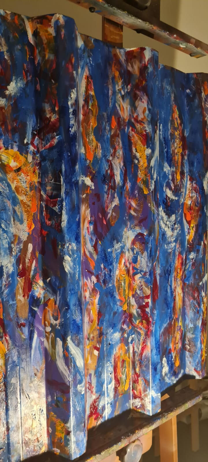 Upcycling: acrílica em tel(h)a de ferro de 94*x80cm.