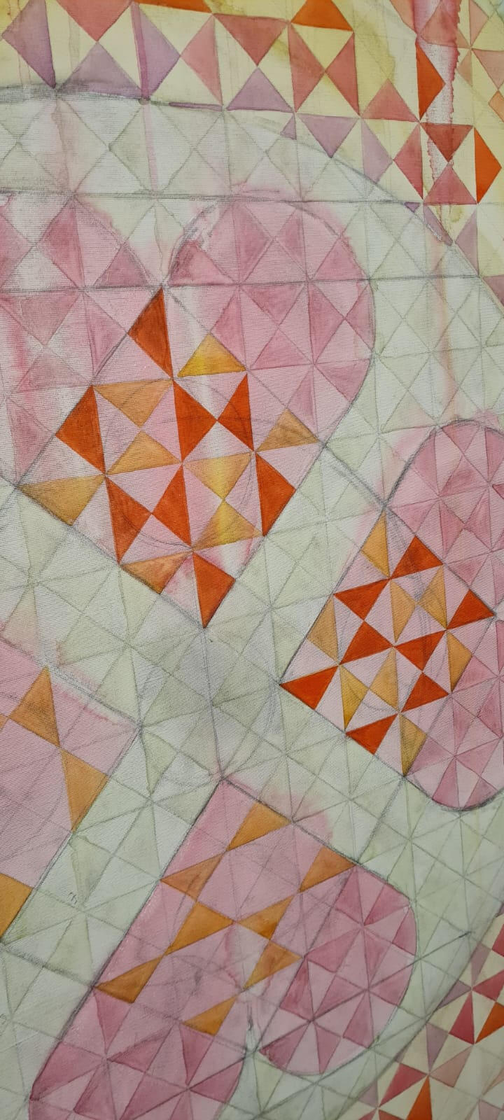 Acrílica e giz pastel sobre tela de algodão, 140x80cm em chassi de madeira com 4cm de profundidade. Acabamento em verniz brilho.